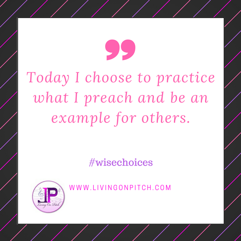 How many times have we heard it said to practice what you preach? In the book of James I am constantly reminded of this. Be a doer not just a hearer. Today I choose to be an example for others. I choose to live for Christ in a godly way. I choose to make sure I am being filled with the spirit and not just thrilled by it. In what ways do you choose to practice what you preach?